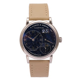 Debuting in 2021, the Little Lange 1 Ref. 182.086 was the first time the German watchmaker fitted the Lange 1 with their 'gold flux' dial. Produced from aventurine glass which contains a unique detailing echoing the appearance of a starry night sky, both visually and mechanically, this special Lange 1 encompasses the mystical wonder of celestial curiosity. Measuring 36.8mm in width, the unisex appeal of the Little Lange 1 remains, as its signature notched lugs command this mid-sized timepiece's exterior. Balance is a re-occurring theme, and its exhibited throughout its skillfully constructed and finished 18k white gold case. Its central caseband is polished rather than the more typical brushing, a finish matched for its lugs and bezel.