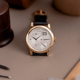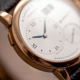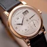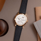 Since its inauguration in 1994, the Lange 1 has enjoyed a constant presence in the brand's line-up through many advancements and variations while still maintaining the essence of its Germanic appeal. Its widespread desire is heightened even further due to the significant part it played in the re-birth of the brand. Examples fitted with guilloché dials, using original movements, fitted with solid case backs, and even stainless steel cases are amongst the pinnacle of collectable Lange 1. It is a rare occurrence for them to appear on the open market.