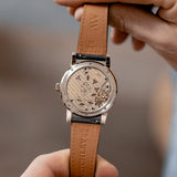 Powering this 101.030 Lange 1 is the manual wind L901.0 Lange movement. This handmade, hand-engraved movement boasts 72 hours of power reserve beating at 21,600 vph with no less than 53 jewels to maintain its performance. As iconic as the dial of the watch, this movement has all the hallmarks of a creation by Lange including the bridges and plate being made from German silver, a hand-engraved balance cock, refined interior angles and chamfering with a level of hand finishing that puts many of the Swiss to shame.