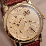 An important detail that can be noticed across all Lange models is found at the lugs. A small notch can be seen between the case and the beginning of the lugs. Contrary to Swiss watches, the lugs do not flow through the case but are rather soldered on afterwards for a unique finish. This feature was designed by Gunter Blumlein himself in order to stand out from the Swiss watches being manufactured.