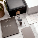This special A. Lange & Söhne Little Lange 1 Custom Order - 111.035X recently underwent a manufacture service and has remained in unworn condition since. The watch is seen here fitted to a Mr Watchley Saffiano Mid-Grey leather strap.