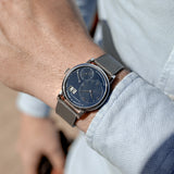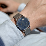 This is where we'd typically address the beautiful proportions of the Little Lange 1 and how with those slightly more slender lugs, the 36mm case truly offers a unisex wearing experience. Or how its more refined form is juxtaposed with the weighty platinum presence. But the wearability of this particular LL1 is a touch different, and it's all thanks to the original customer who requested a dial change. A conventional 111.035, with its sleek Darth black dial, is a laced-up, formal expression that conveys a sense of mightiness. But with its more approachable, calming, and dynamic blue dial hue, the feeling of this 111.035X is one of great importance – and best of all, due to the subdued visual nature of platinum and the relaxed tone of blue, the bulk of its significance is reserved exclusively for the wearer.