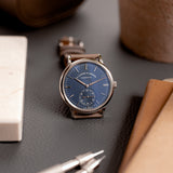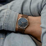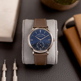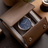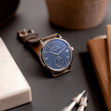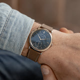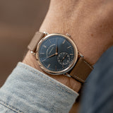 This Saxonia is a pure box ticker on the wrist. 38.5mm in width combined with a staggeringly slight 7.8mm thickness makes this Lange a masterclass in balanced proportions. Its white gold case is heavy and substantial to touch yet reassuringly hefty on the wrist. Mix its slenderness with its precious metal case, and the luxurious wrist presence is unavoidable. Although it's not black or silver, its deep blue dial is contemporary, sleek, and pure sophistication.