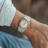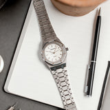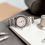 Measuring 36mm in width, you may be forgiven for assuming this 14790ST Royal Oak is small, dainty, and lacking in wrist presence. The reality is in fact quite the opposite. Of course, it does take up a smaller amount of wrist real estate than the larger ‘Jumbo’, but its measurement on paper don’t tell the whole story. The Royal Oak should be thought of as not just a watch head but rather the whole packaging when strapping it to the wrist, as the relationship between case, bracelet and bezel are unlike many other watches on the market. The 14790ST is a mid-sized reference that would make a brilliant regular wearer for a wide range of wrist sizes in all types of situations from formal board meetings to relaxing downtime.