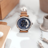 The base of the dial is complete in a gorgeous royal blue tone, complemented by contrasting applications of white throughout. The most meaningful and relevant white detail is, in fact, its large sweeping arched scale on the right-hand side of the case, counting up to 59. In addition, each trio of sapphire disks features blue digit numerals and the all-important arrow, ensuring accurate time telling can be achieved for each hour. Mirroring the half of the dial dedicated to time reading is the vertically configured arching Audemars Piguet signature along with the 'AP' logo at the conventional twelve position, three stars (naturally), and 'Star Wheel' at what would be six. Despite the sheer amount of playful watchmaking and movement happening in this piece, the dial maintains a refined amount of balance that is additionally appealing to the eye.