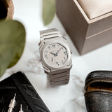 This timepiece, as a dichotomy between curves and angles with its rounded bezel and slanted facets, combines engineering excellence and a refined aesthetic. It was available only to retailers in the Middle East, yet is no longer on the market, making this modern icon a collector’s reverie.