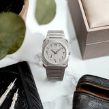 This highly advanced Bulgari Octo Finissimo Middle East edition, Ref. 103023, debuted in 2019 as part of what can be considered a tribute series to watchmaking feasibility, celebrates slenderness. It is a limited edition of 100, executed completely in titanium, making the timepiece not just a lean statement on the wrist but also phenomenally light to wear.