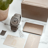 This special Middle East edition, Bulgari Octo Finissimo, Ref. 103023, in titanium is in excellent condition and has perfect mechanical functioning. It comes as a full set, being a limited edition out of 100 pieces.