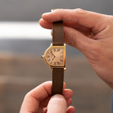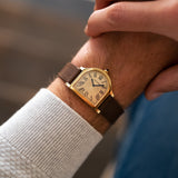 It would be a year later though when the real twist would come. The Cloche form made conventional sense for being able to tell the time for a watch-brooch. Yet this was the debut of Les Années Folles (the Roaring Twenties) and there was little appetite for convention. Quite the opposite. It was the time to be radical - and fabulous. Cartier switched perspective and made La Cloche into a platinum and diamond wristwatch, followed by a yellow gold version with leather strap in 1922. A sure-fire hit with the new, sharply dressed personalities of the slightly eccentric and rather eclectic café society scene.