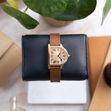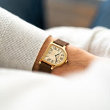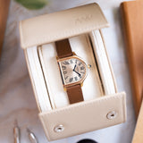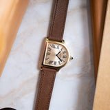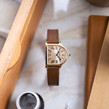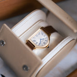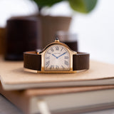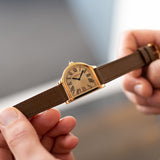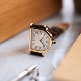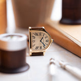 The Cloche is a relative rarity within the Cartier catalogue, making appearances throughout the years since its creation in the 1920s but always in limited numbers. A small number of models were fashioned between 1920 and 1970, while the 1980s saw a flurry of aesthetically creative quartz models as part of the Louis Cartier collection. A small but significant design change would take place with the next version launched in 1995. The two-hundred-piece limited run in yellow gold would be produced with a brushed 6 ‘o’ clock side, adding a new dimension to the Cloche. No longer just a wristwatch but now also created with the option of being used as a desk clock. A Cartier model in continual evolution. 2007 would see the Cloche revisited as part of the Collection Privée Cartier Paris with the creation of just 100 pieces in yellow gold, after which the model would fall into comparative obscurity - until now.