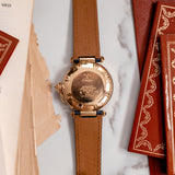 Powered by the automatic Cartier Caliber 20, the watch has a power reserve of 38 hours and vibrates at a rate of 28,800 beats per hour.