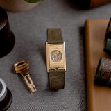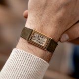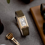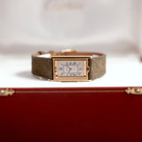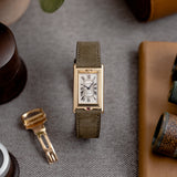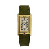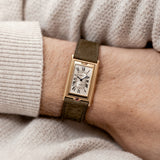 This Cartier Tank Basculante is in fantastic untouched condition. The watch comes fitted to a Olive Mr Watchley strap with the original 18k yellow gold buckle and the original box also being included