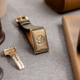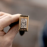 The Cartier Basculante (which translates to ‘tilting’) is a vertical flipping watch that sits within genius case architecture while maintaining its traditional Tank aesthetic and structure. Due to the flipping motion happening within the case in a cradle-like motion, the watch can comfortably be positioned face up, face down or vertically upright making for a handy bedside clock. Of course, this isn’t the only watch that was birthed during this time to combat sports based activities as the Reverso from Jaeger Le-Coultre has a similar origin story. However, the difference lies in each watch’ reversing action. The Reverso is a slide-out and horizontal flip of the dial rather than a vertical one. The story gets even more fascinating though as the patent for the Basculante flipping motion was supplied by none other than Le Coultre, César de Trey of Spécialités Horlogers in Lausanne and Jaeger in Paris. This was an exclusive patent for Cartier, further drawing parallels between two of the most iconic watchmakers who are known for championing the rectangular watch case.