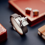 The Cartier Tank Basculante 2390 is powered by the hand-wound mechanical Cartier 060 caliber, also used in many haute horlogerie models of the Collection Privée Cartier Paris (CPCP).