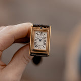 The Tank Basculante is known as the only luxury watch competing with Jaeger-LeCoultre’s Reverso (who was a partner at the time, both models were manufactured by Spécialités Horlogères SA, which was part of Jaeger-LeCoultre). But the Basculante is, unlike the Reverso, flipped vertically through 360 degrees (instead of turning the face on its horizontal axes), making it unique in its use.