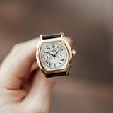 Dating back to 1912, its design derives from the first ever Tortue created by Louis Cartier. Inspired by the Tonneau it is known for its distinguishably elegant, rounded form.