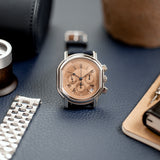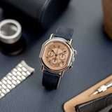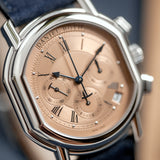 This Daniel Roth Masters Chronograph Salmon dial, reference 247 is a testimony to the watchmaker’s legacy, being one of the timepieces manufactured around the turn of the century.