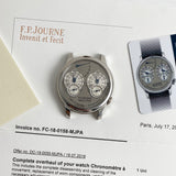 The watch is from 2007 and is in great perfect condition. Has been serviced by F.P.Journe in 2018 (with service papers and service box) and the customer chose not to polish the case. The Platinum case is completely untouched.