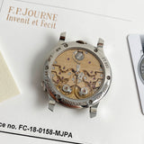 One of the most interesting, and compelling, aspects of an F.P. Journe wristwatch is that the entire movement of every piece is made of solid 18k rose gold. What is most impressive about F.P. Journe is its level of production. Its roughly 800 watches per year are completely manufactured in its downtown Geneva headquarters, from top to bottom.