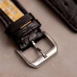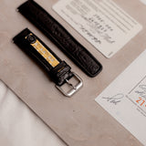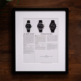 The watch presented here is arguably one of the most iconic and desirable IWC models ever made. The 3705 immediately makes an unique impression on the wrist, thanks to the stealth look of the Zirconium Oxide case material and the perfectly sized 39mm case. Apart from the more tactical and aggressive look off the watch, there are some interesting details that deserve attention. First, it is important to point out that the case back, crown, and pushers are in steel due to the fact that these parts were too delicate to be produced in zirconium. Second, the days presented in the day window of this specific model of the 3705 are in German. Together with the brands’ headquarters being located in Schaffhausen (the German part of Switzerland), this makes the perfect fit. Third, the hour and minute hand, together with the hour markers were finished in tritium. This coating has aged nicely and evenly over the years and gives the watch a unique and distinctive look, which is appreciated by many watch enthusiasts among us. Fourth, as mentioned in an original advertisement from 1994 about the 3705, the watch is protected against magnetic fields thanks to a soft iron inner case. The IWC ad, provided by Ad Patina, also mentions the unique case material; “The quality that really sets it apart from all other IWC pilot’s watches is the fact that it is available in mat-black ceramic, which in aviation terms inevitably reminds one of Stealth technology”.
