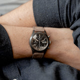 A lot of watch enthusiasts appreciate the brand IWC from what they have done during the quartz crisis and the 90’s. Günter Blümlein was the protagonist during this period. He started restructuring IWC in 1981 with a very clear approach, to “put an end to watchmaking boredom”. During his time at IWC, Blümlein re-invented the brand by giving a twist to the Portofino, Portugieser, and Pilot collection, while also introducing a round case model for the Da Vinci collection in 1985. The 3705 is the most memorable model of the Blümlein time period, as it summarises Blümleins’ work perfectly; a no-nonsense look, paired with innovation in materials and a focus on mechanical movements' importance.