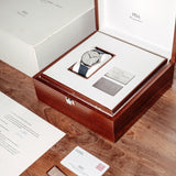 The watch comes in it complete original set. A special wooden box made for this limited edition with original papers and PISA certificate. Even the original strap, stamped "PISA" is included in the set.