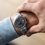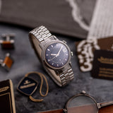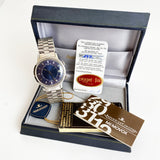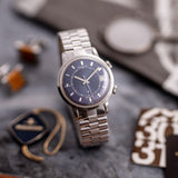 It has a Blue dial that is rare to see these days and especially in a full set like this one. The Memovox was sold in 1989 by "Piaget & Fils", almost 20 years after its production year. This must have been a "NOS" watch that was not popular in that time but today its is one of the most sought after memovox due to its beautiful blue dial and oversized case (37 mm)