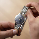 Also the bracelet is original to the watch, signed JL on the buckle, giving the watch a very cool retro look. A leather strap can be mounted if wanted.