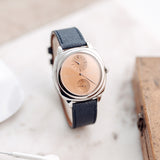 The Galet Square Regulator normally comes in a pink gold case with a black dial. Laurent Ferrier made an exception for a VIP customer who wanted the regulator with a salmon dial and a steel case. This piece is one of a kind and no other has been manufactured like it.