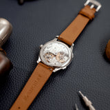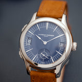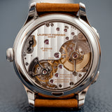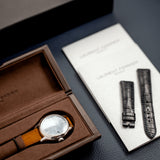 The watch is in mint condition and has perfect mechanical functionality. It is a unique custom made piece. It comes with the original Laurent Ferrier blue alligator leather strap and a cognac nubuck strap from the Mr Watchley collection, with steel Laurent Ferrier pin buckle.