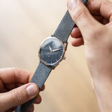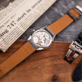 The simplicity of the dial matched with the odd and distinctive delta-shaped hands with the oval Parmigiani logo marking at 12 o’clock give it the unique simple look.