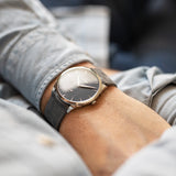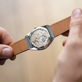 Powering the Tonda is a gorgeous in-house micro-rotor movement PF 702 that Parmigiani finishes by hand. The micro-rotor itself is adorned with a hand engraved nautilus-like pattern that makes it a charm to see as it spins. The sapphire caseback gives full view of the movement.