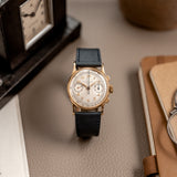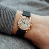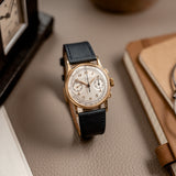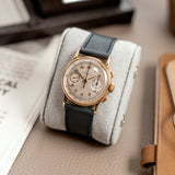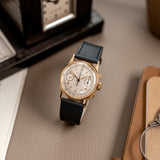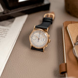 During the 1920s, the interest and demand for chronographs was growing exponentially. To meet this demand, in the 1930s, Patek Philippe announced a brand new reference which, despite earlier examples that were created in limited numbers, was their first serially produced chronograph watch. Launched two years after the dress watch defining 96 Calatrava and under the Stern family's management, the 130 chronograph showed a close resemblance and approach to design as the 96 but in a bi-compax chronograph configuration. Classically proportioned with an overriding sense of elegance, the 130 was predominantly produced in precious metals, yellow, pink, and white gold, with a minimal amount produced in stainless steel. The 130 enjoyed approximately 30 years of production. It's estimated that as little as 1,500 examples were produced.