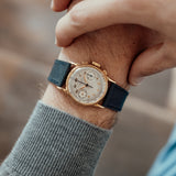 At 33mm, the Patek Philippe 130 does fit smaller on the wrist than many may be used to. However, thanks to its long lugs, thin bezel combined with wide dial aperture, and simplified dial details, the 130 does manage to feel closer to a 36mm piece in the real world. Furthermore, its use of yellow gold throughout is textbook Patek Philippe, a watchmaker famed for providing the pinnacle of luxury. Be it the large gold Breguet numerals, solid gold leaf hands, dashes of thermal blueing or even just its delicately brushed silver dial, this 130 is a truly special piece of traditional luxury horology.