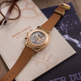 The details and the colors on the dial are just amazing. Roger Dubuis called Ivory, an off white with a tint of pink. Maybe just a reflection from the pink gold case but its beautiful.