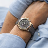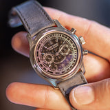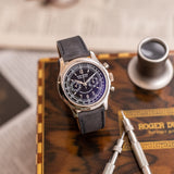 The H40 Chronograph presented today is one of the earlier pieces created by the legendary watchmaker, before Roger Dubuis became a Richemont owned brand name in 2008. Around the year 2000 Roger Dubuis produced only 28 of these watches. For each variant in the series, there were no more than 28 made.