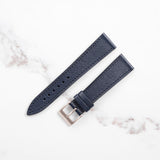 Mr Watchley Saffiano Midnight Blue strap, has a very distinct crosshatch texture that is widely used by luxury brands all over the world. Birch oil is worked into the leather making it wear-resistant, resilient and more water-resistant. Typically this strap will continue to soften over time, while keeping it's colour and shape.