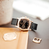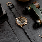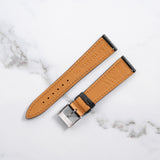 Mr Watchley Saffiano Onyx strap, has a very distinct crosshatch texture that is widely used by luxury brands all over the world. Birch oil is worked into the leather making it wear-resistant, resilient and more water-resistant. Typically this strap will continue to soften over time, while keeping it's colour and shape.