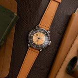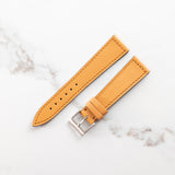 Mr Watchley Smooth Boxed Light Cognac Calf leather is strictly made from hides coming from the famous "Tannery Degermann" in France. This premium leather first undergoes a chrome tanning and then a vegetable tanning. Finally, this stunning leather is greased with mineral, animal and vegetable oils.