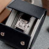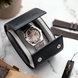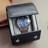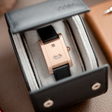 The leather travel case by Mr Watchley is designed to carry one watch. The watch case is made from the super resilient, scratch resistent and easy to clean Saffiano leather. The interior is made from suede-lined, to guarantee the best protection against scratches. The watch cushion can easily be removed in order to install and remove your watch simply and quickly. The travel case closes thanks to two discrete snap fasteners, making it a clean and elegant way to store your watch safely.