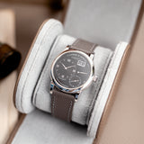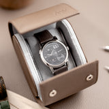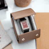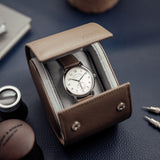 The leather travel case by Mr Watchley is designed to carry one watch. The watch case is made from the super resilient, scratch resistent and easy to clean Saffiano leather. The interior is made from suede-lined, to guarantee the best protection against scratches. The watch cushion can easily be removed in order to install and remove your watch simply and quickly. The travel case closes thanks to two discrete snap fasteners, making it a clean and elegant way to store your watch safely.