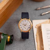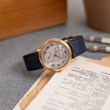 This specific Ref. 8 was manufactered in 1999 and is fashioned from yellow gold, its case measures 37mm in diameter, has a slim stepped bezel and a recessed crown. Combining these features together makes an already very classical, traditional and elegant timepiece. Delve a little further, and whilst the classic elegance remains, the Urban Jürgensen individuality, craft, and dedication to traditional technique really starts to shine through.