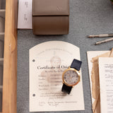 This refined timepiece is in incredible well preserved condition, which hails from one of the most noteworthy moments within the Urban Jürgensen archive. The timepiece comes with its original strap and a 18K gold Urban Jürgensen pin buckle. The watch's original certificate and purchase receipt are also included.