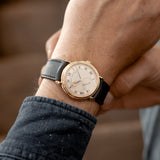 It is also interesting to note that 'Copenhagen' is featured on the dial, something which is unique to early pieces and cannot be found on more recent models. Apart from this, the timepiece does not feature a date aperture at 6 o’clock. Making the already in small quantity produced timepiece even more rare and interesting.