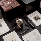 As you’ve come to expect from Mr Watchley, the condition of this 47101 is A1, mint and unpolished. Offered as a complete full set with inner and outer boxes, the original manual, papers, and even its original Vacheron Constantin crocodile strap with its original gold spring bars and complete with yellow gold pin buckle. The watch is fitted with a Mr Watchley black Saffiano strap.