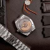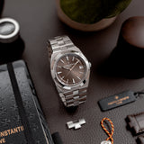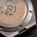 This designs dates back to 1977 when the 222 has been launched for the brand’s 222nd anniversary and has ever since been one of the competitors of the Audemars Piguet Royal Oak and Patek Philippe Nautilus. The Overseas 4500v of today has been launched in 2016, third in its generation, stemming from the design by Dino Modolo – an independent designer in charge of many Vacheron Constantin pieces and Vincent Kaufmann, an in-house designer.