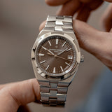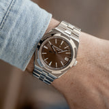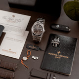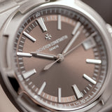 With this Vacheron Constantin Overseas 4500v a dress and classic sports watch are merged into a contemporary icon. The 41mm steel watch, with a chestnut sunburst dial, date at 3 and satin - polished finished case, bezel and bracelet edges perfectly suit an active lifestyle.
