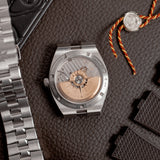 Its bezel design, a serrated profile reflecting a broken Maltese Cross, inspired by the emblem of Vacheron Constantin, gives the watch a distinctive touch and strong character. The cross is also subtly depicted in the design of the steel bracelet, coming with an exquisitely-finished clasp.