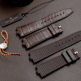 Next to the integrated bracelet in stainless steel, there is also a rubber and crocodile strap. The slim profile of the case and bracelet truly hugs the wrist. Another comfortable and smart feature of this watch is the interchangeable bracelet system. No more watchmaker visits or fighting your strap at home: the Overseas 4500v has got you covered with a quick-release system. Simply push a button between the lugs to release the bracelet and change it, making it even more versatile to wear.