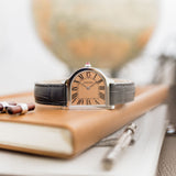 To wear the Cloche is to embrace Cartier's spirit of the unexpected. On the wrist, the asymmetric case challenges traditional orientation. It's 37mm height by 28mm width, and a svelte 6.5mm profile gives it a jewel-like intimacy. The bell-shaped case naturally draws the eye, and while its asymmetry might appear unconventional at first glance, it settles against the wrist with surprising comfort.